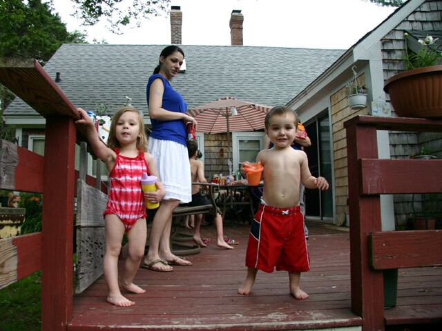 Angelina playing with her cousin Brian on Auntie Ella's deck