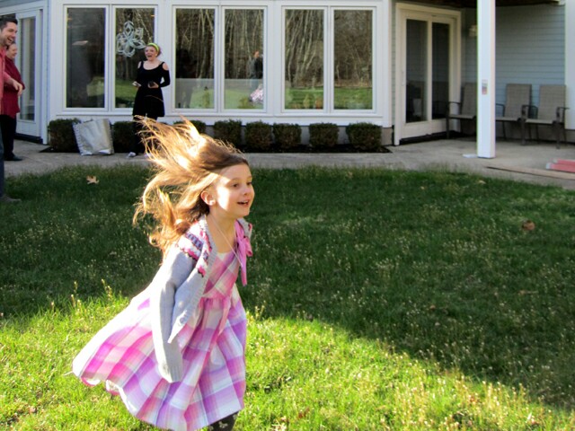 Cece's war face! Getting nerf marksmanship instruction from Mama.